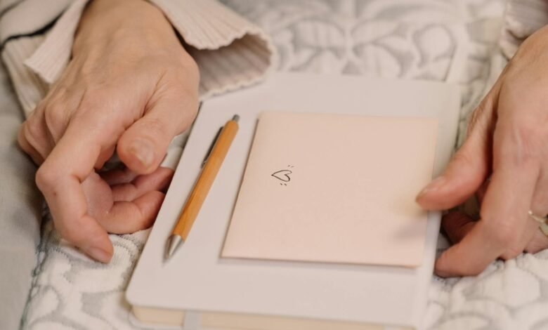 Günlüğü ve zarfı tutan bir kadının yakın çekim fotoğrafı | Kaynak: Pexels