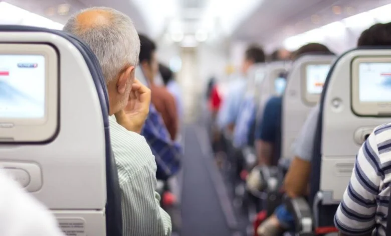 Uçakta, önüne bakan bir kadının yakın çekim fotoğrafı | Kaynak: Midjourney