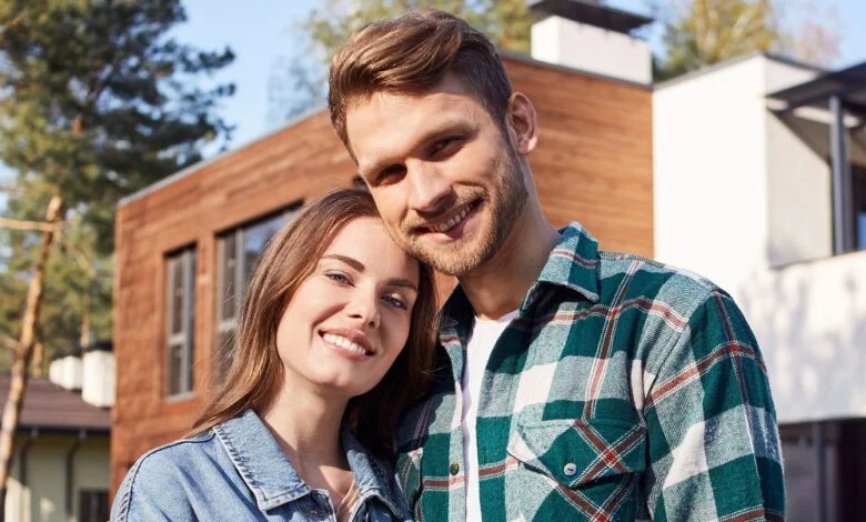 Bir evin önünde mutlu bir çift | Kaynak: Midjourney